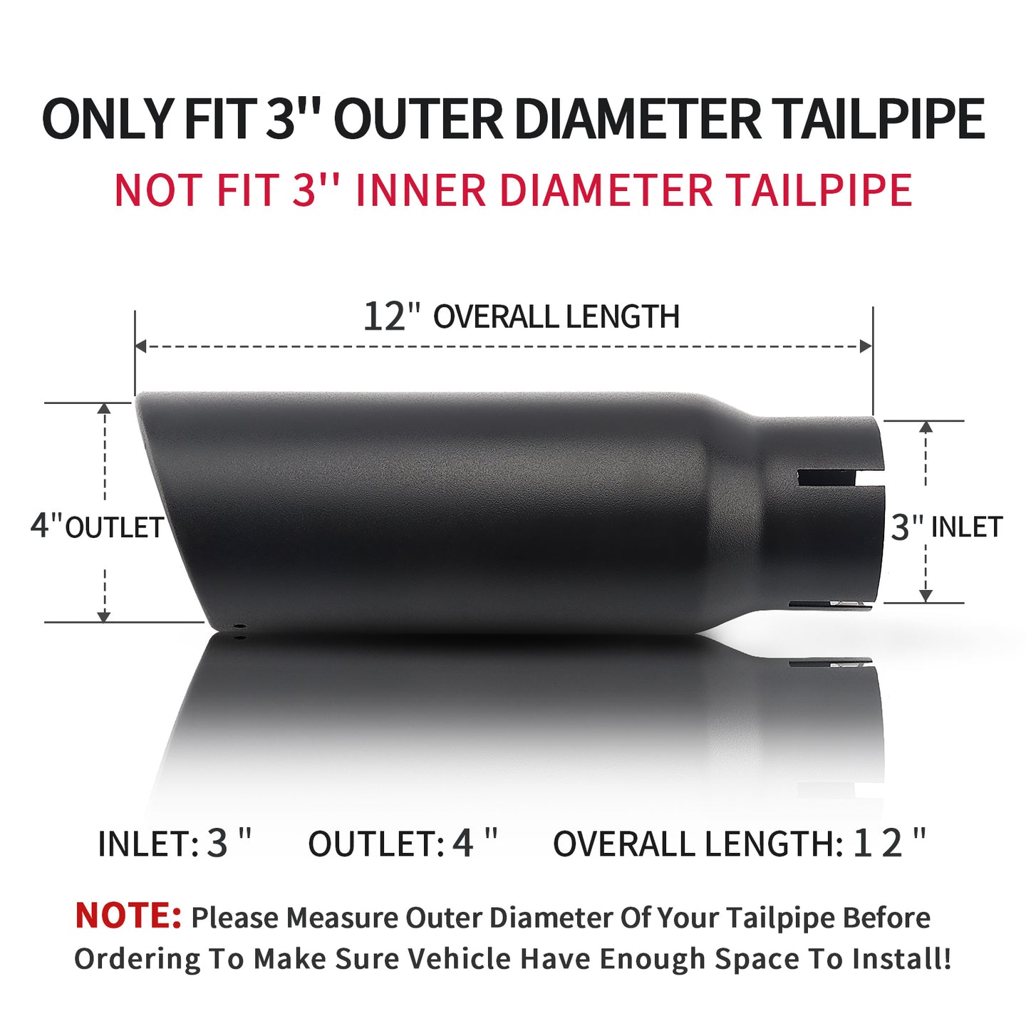3" Inlet 4" Outlet 12" Overall Length,Clamp-On Design Universal