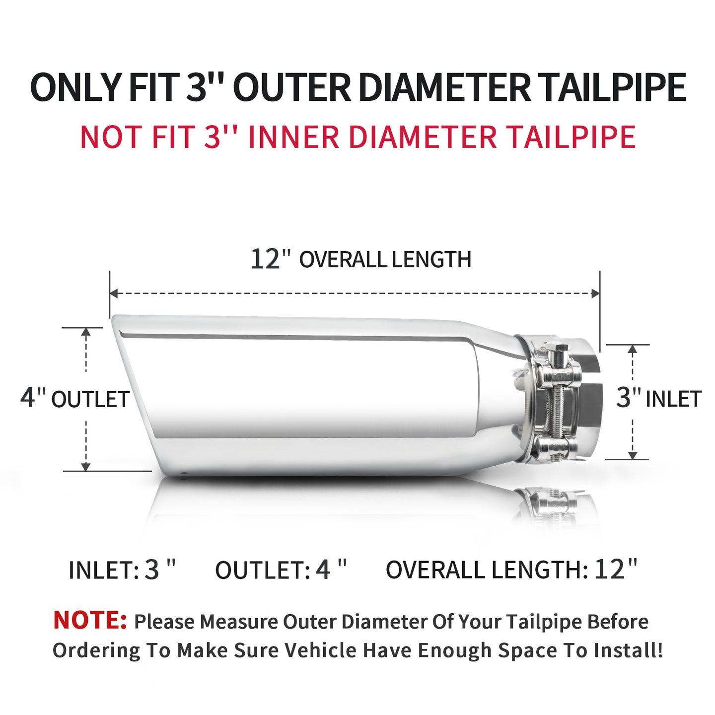 3" Inlet 4" Outlet 12" Overall Length,Clamp-On Design Universal