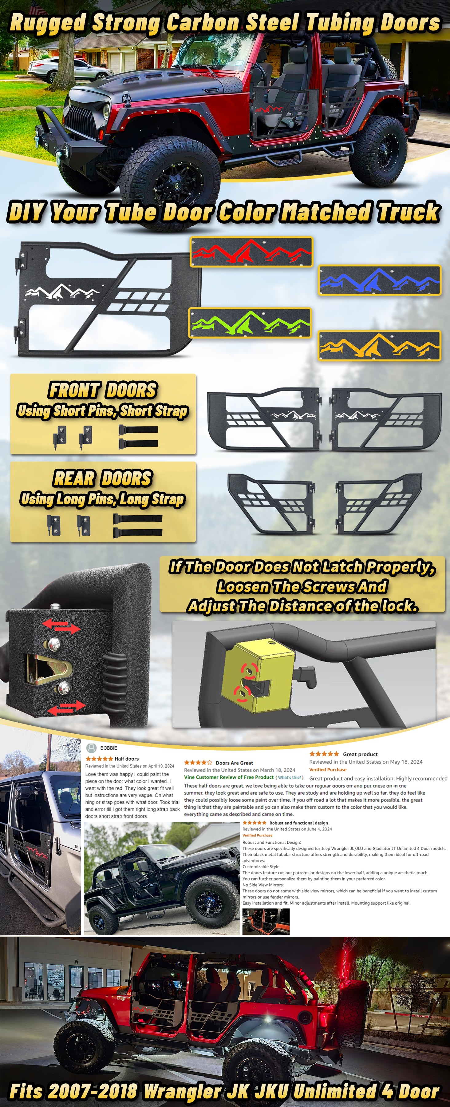 Tube Doors Fit 2007-2018 Wrangler JK (NOT JL) 4-Doors No with Mirror Mount