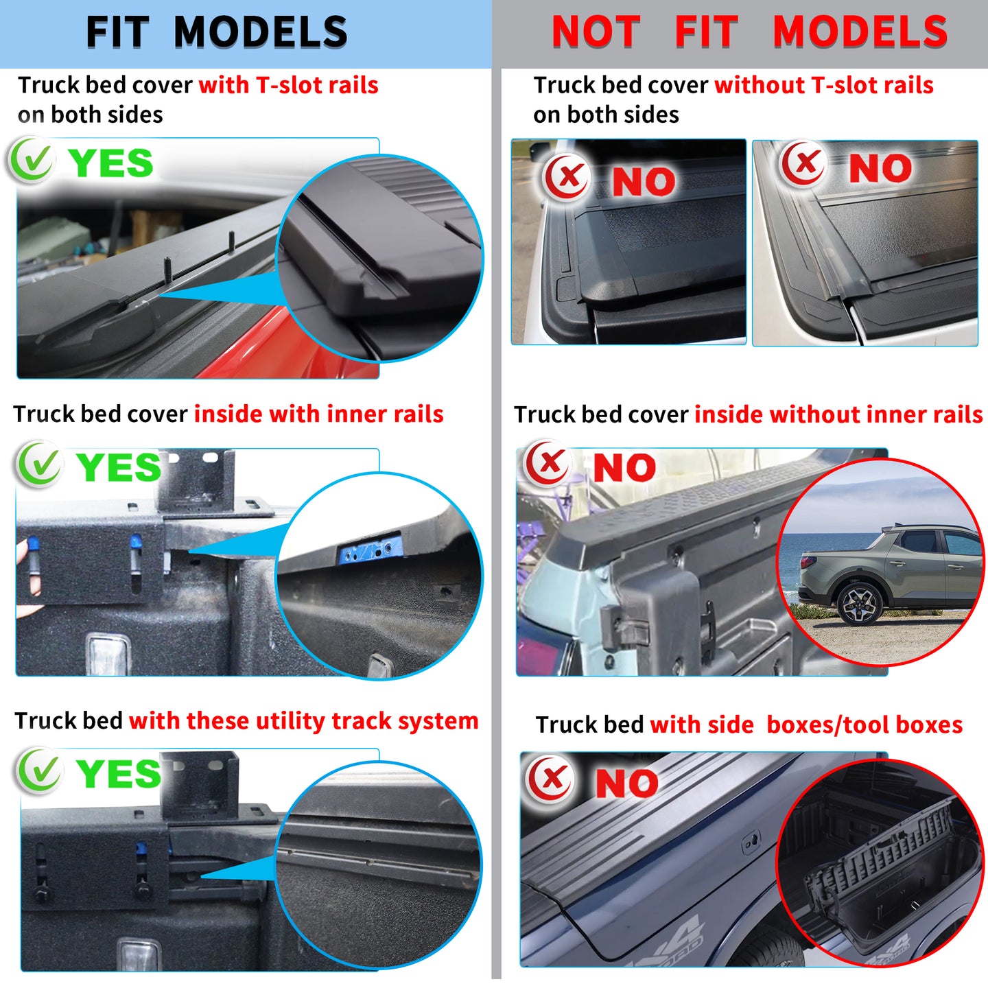 Fits Truck Bed Inside With Inner Rails, Fits Truck Bed With Utility Track Systems.